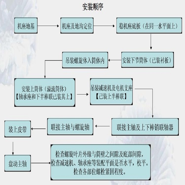 6、安裝時,注意螺旋體下部與底板的軸向間隙應不小于10-15mm。