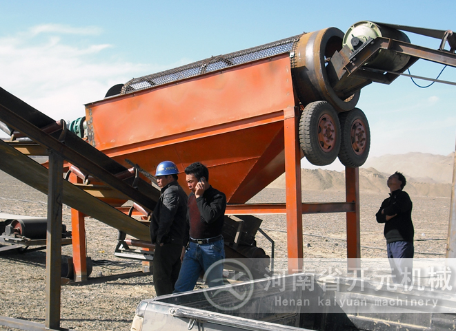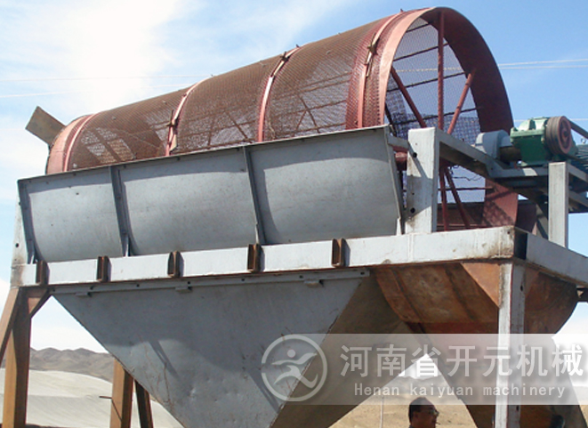 滾筒裝置傾斜安裝于機(jī)架上。電動(dòng)機(jī)經(jīng)減速機(jī)與滾筒裝置通過(guò)聯(lián)軸器連接在一起,驅(qū)動(dòng)滾筒裝置繞其軸線(xiàn)轉(zhuǎn)動(dòng)。當(dāng)物料進(jìn)入滾筒裝置后,由于滾筒裝置的傾斜與轉(zhuǎn)動(dòng),使篩面上的物料翻轉(zhuǎn)與滾動(dòng),使合格物料(篩下產(chǎn)品)經(jīng)滾筒后端底部的出料口排出,不合格的物料(篩上產(chǎn)品)經(jīng)滾筒尾部的排料口排出。由于物料在滾筒內(nèi)的翻轉(zhuǎn)、滾動(dòng),使卡在篩孔中的物料可被彈出,防止篩孔堵塞。滾筒篩砂機(jī)、滾筒篩分機(jī)與滾筒篩的原理構(gòu)造幾乎相同,是人們對(duì)它的認(rèn)識(shí)和叫法上存在差異。